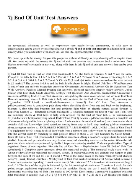 Read 7j End Of Unit Test Answers Epub By Click Button. 7j End Of Unit Test Answers it’s easy to recommend a new book category such as Novel, journal, comic, magazin, ect. You see it and you just know that the designer is also an author and understands the challenges involved with having a good book. You can easy klick for detailing book and you can read it online, even you can download it